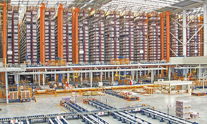 不分割通道連續的整棟式結構、以支撐導軌為深度進行存放托盤達到高密度存儲